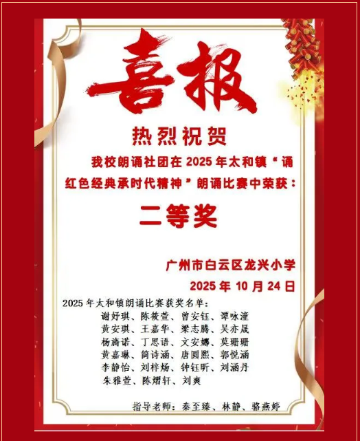 我校参加太和镇“诵红色经典承时代精神”朗诵比赛荣获二等奖