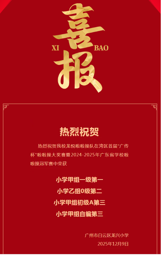 我校参加全国啦啦操竞赛荣获广州市第一名